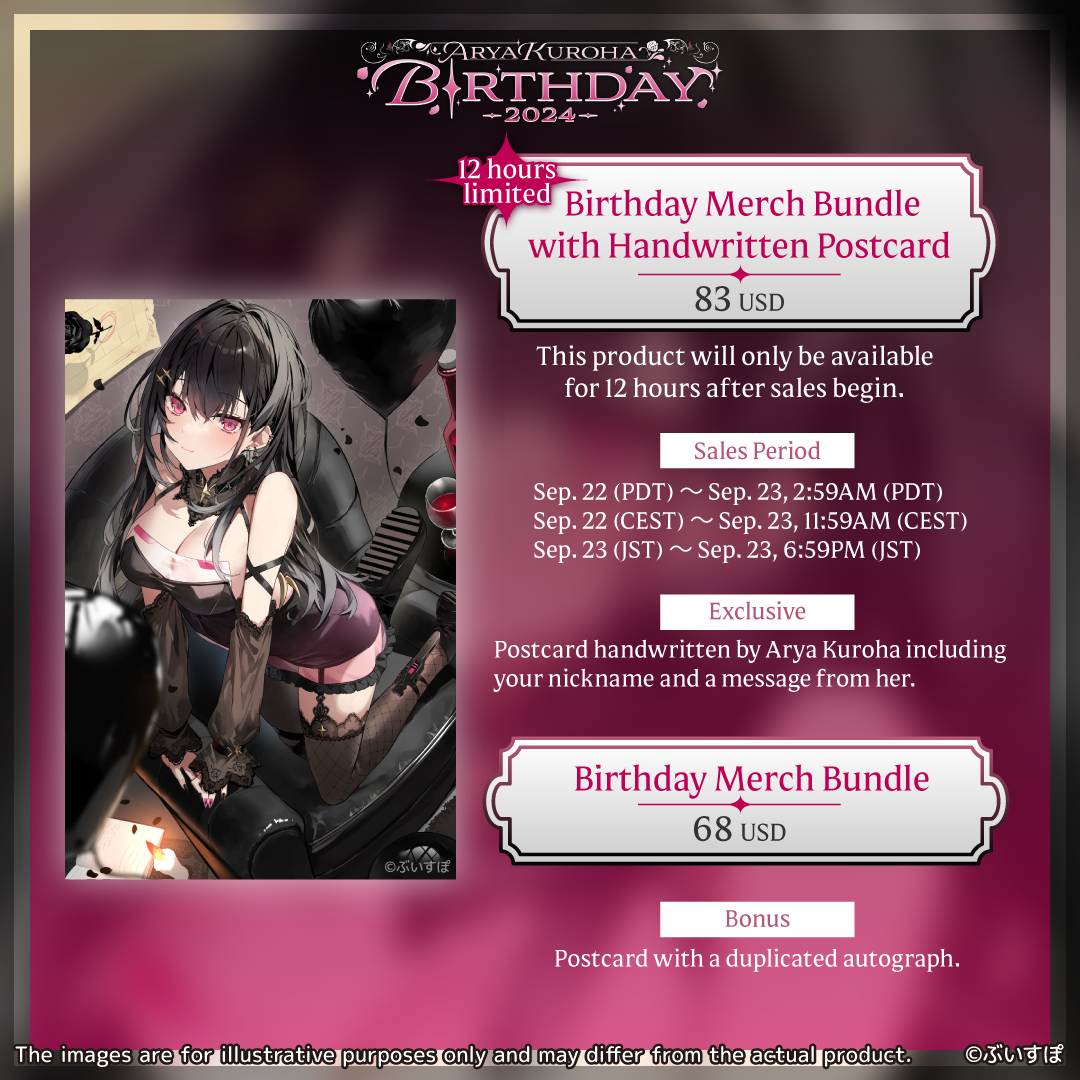 These are made-to-order products commemorating the Birth of Arya Kuroha ( @aryakuroha ).